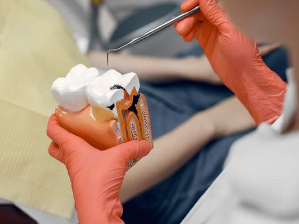 2. Цель: После лечения корневых каналов внутренняя часть зуба очищается и пломбируется, чтобы удалить инфицированную или поврежденную пульпу. Однако это может ослабить структуру зуба. Внутрь корневого канала помещается фибровый штифт, чтобы укрепить его и обеспечить опору для коронки или другой реставрации.